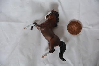 This model has been painted to a liver chestnut with minimal sabino markings. He has heavy whites on four legs and a white blaze. He was based on a photo of a hackney pony and I'm really happy with how the colour came out. It really suits this mould.